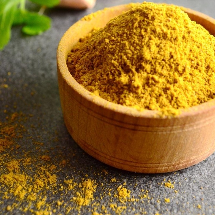 У меня давно лежала приправа карри, и, наконец, я решила ее пустить в дело. В составе моей приправы карри, как заявлено продавцом - листья карри, куркума, кориандр, перец. Приправа имеет ярко-желтый цвет.