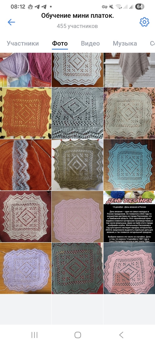Всем привееет! Я потерялась. Но были причины. Активно успеваю вести только вк. Расскажу по порядку: В конце ноября я открыла доступ к мини обучению по вязанию платка. Это 3 видео урока, которые рассылает бот в личку в вк. И чат, где мы все это обсуждаем. Учимся вязать миниплаточек в оренбургскоц технике. Вот такие мини платочки на 5 зубчиков получаются у девочек. Я тем временем что? Правильно, нарисовала новый платок. Решила сделать его не большим, всего на 21 зубчик. В первую очередь отрисовала кайму и отвязала все 4 угла. Это был первый вариант, после которого я переделала немного узор. Потом на втором этапе отрисовала центр и собрала все в одну единую схему. Все схемы узоры я собираю в обычном paint. А рисую в программе knit designe studio. Потом приступила к вязанию полноценного платка. Ушло у меня на это 3 недели с перерывами на закопать цветы и укрыть их в зиму, спрятать все перед морозами и везде слить воду и тд и тп. В общем подготовила двор к зимовке. Параллельно болели с