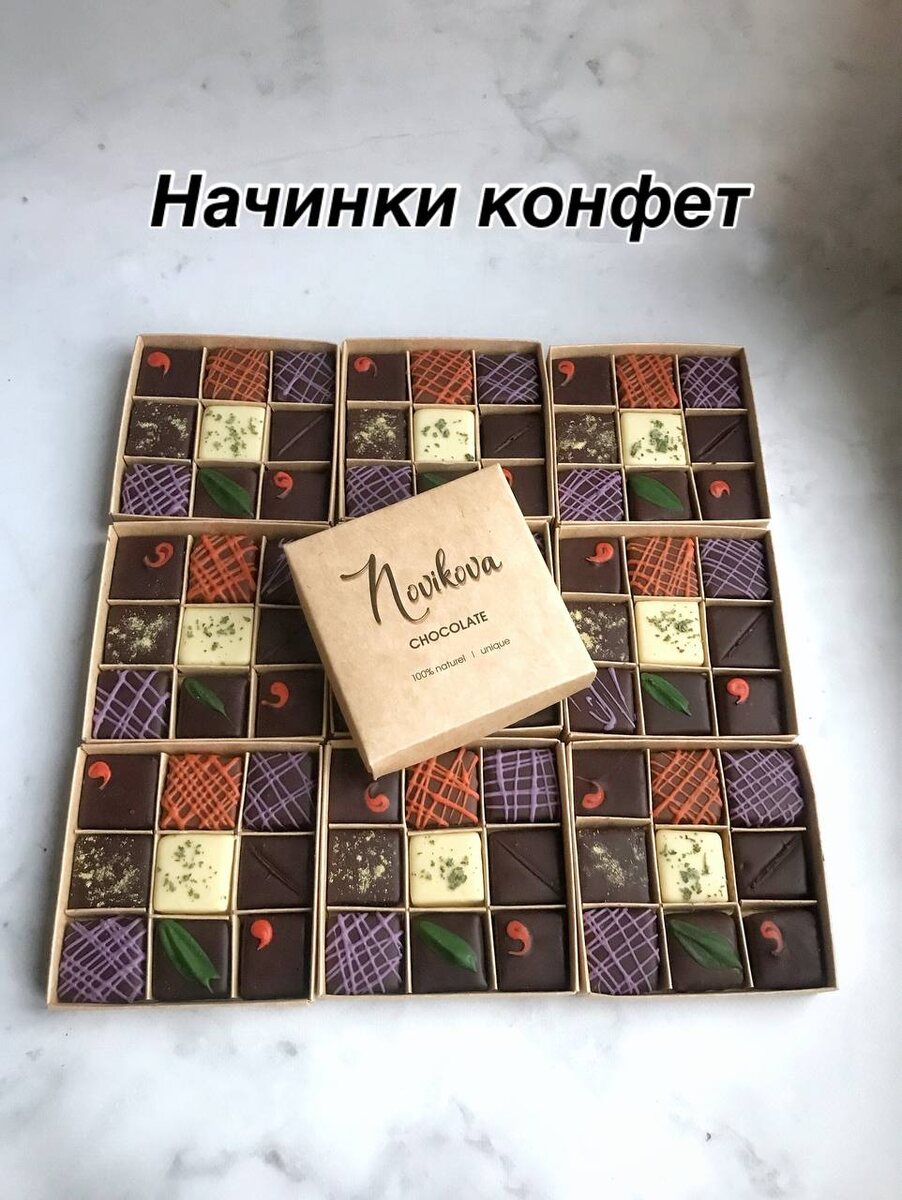 ! Ассортимент начинок конфет в наборы уже не такой большой, как был, но все же составить коробочку вы можете из следующих вкусов: 1. Саган Дайля, конфета с ароматом и вкусом этой прекрасной травы на белом шоколаде, покрыта тёмным, что ещё лучше дополняет вкус. 2. Кофе-абрикос, конфета двухслойная, один слой это нежный абрикосовый мармелад, который покрыт кофейным ганашем и тёмным шоколадом. 3. Облепиха-кедровый орех, тоже двухслойная конфета, но тут ганаш приготовлен на основе облепихового пюре, а хрустящий слой состоит из кедрового пралине с вафельной крошкой и покрыто молочным шоколадом. 4. Апельсин-корица, так же имеет два слоя, мармелад апельсиновый и нежный ганаш с корицей. И по одной конфетки, которые могут оказаться в вашем наборе: глинтвейн и марципан-имбирь. Наборы могут быть на 6 конфет (1140 руб) и в брендированной упаковке на 9 штук (1710 руб)