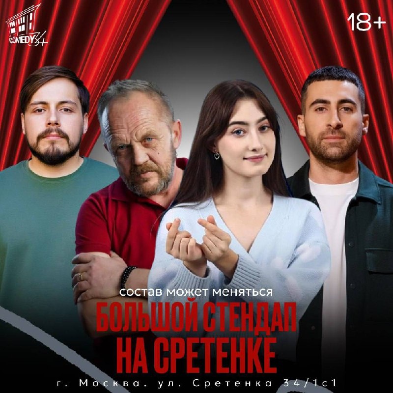 COMEDY ✅ 🗺ул. Сретенка 34/1с1 🤩19:00||ОpenMic Комики проверяют свежие шутки Билеты 🤩21:00||Большой стендап на Сретенке Много комиков, много веселья Билеты ______________________________ StandUp Brothers 🗺ул. Садовая черногрязская 22с1 🤩19:00||Опытные комики с TV и YouTube Классные комики успевшие заявить о себе с экранов Билеты 🤩21:00||Большой Stand Up концерт Стендап и ничего лишнего Билеты 🤩Твой промокод на скидку 15%
