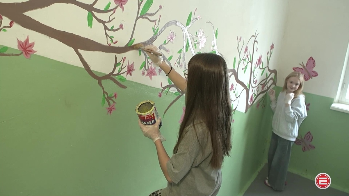 Цветёт сакура, порхают бабочки. В Ревде дети рисуют в подъезде