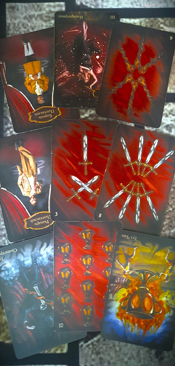 Добра всем, подписчикам, гостям канала. Я рада вновь вас приветствовать на своем канале Зеркало Судьбы. Меня зовут Наталья, и здесь я буду читать для вас различные расклады. И не только :) Для записи на личную консультацию обращайтесь: WhatsApp, Telegram, МАХ +7 901 198 63 32 (в ответном сообщении я вам подробно расскажу об условиях и стоимости) А сейчас начинаем наш расклад... Перевернутый Король Пентаклей указывает на дисбаланс в материальной и эмоциональной сфере, вероятно, в отношениях присутствует либо чрезмерная зацикленность на материальном, либо ощущение финансовой нестабильности, подрывающее доверие. Вы можете чувствовать, что партнер не проявляет должной ответственности или не готов брать на себя обязательства, необходимые для углубления союза. Перевернутая Императрица сигнализирует о нарушении естественного течения женской энергии, возможно, вы испытываете дефицит заботы, не ощущаете себя в безопасности или сталкиваетесь с эмоциональной холодностью. Это создает внутренний ди