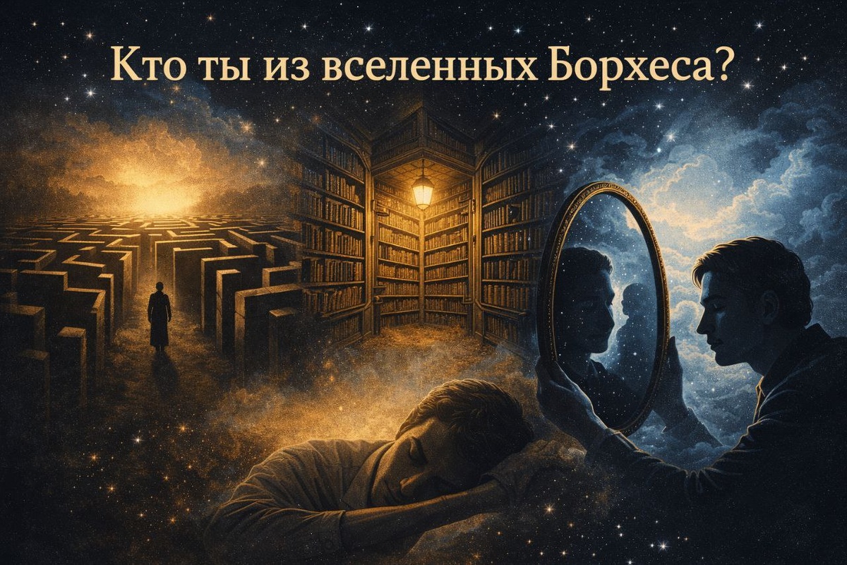 Вселенные Борхеса — это не миры, а способы существования сознания. Лабиринт, библиотека, зеркало, сон, книга — у него это не декорации, а формы мышления. Этот тест не определяет, «какой ты персонаж». Он показывает, в какой "борхесовской реальности" ты живёшь чаще всего, когда остаёшься наедине с собой.