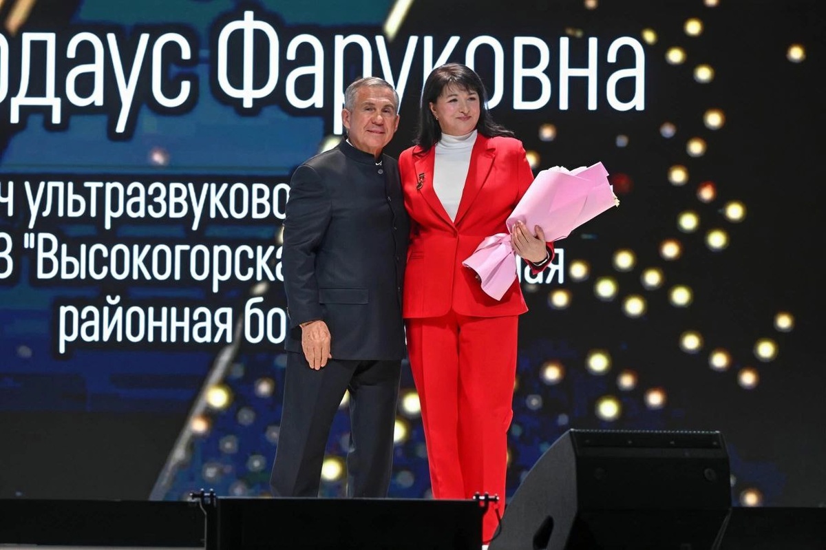 »! Раис Республики Татарстан Рустам Минниханов присвоил почетное звание «Заслуженный врач Республики Татарстан» врачу ультразвуковой диагностики Высокогорской ЦРБ Фирдаус Зиятдиновой!Церемония прошла на торжественном мероприятии, посвященном 90-летию Высокогорского района. Поздравляем Фирдаус Фаруковну с заслуженной наградой! 📲 Подписывайтесь на наш канал в MAX