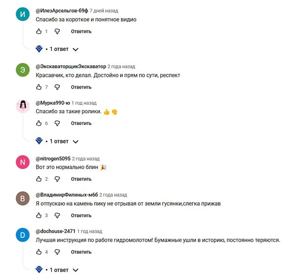 почти 8000 просмотров, 487 лайков и вот такие классные комментарии. Вы также можете посмотреть это видео на нашем сайте — без рекламы и регистрации. Задавайте вопросы – мы обязательно ответим! #видео #гидромолот #ГКТрадиция