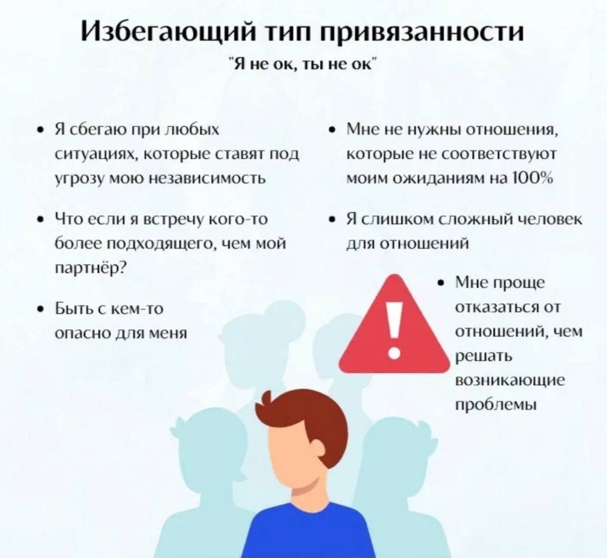 Доброе утро, дорогие мои💛 Сегодня остановимся подробнее на тех людях, которым присущ избегающий тип привязанности. Термин вроде сам говорит за себя, однако именно за ним кроется целая палитра особенностей поведения и реакций, столь знакомая многим из нас. 🖐👁🖐Люди с таким типом склонны демонстрировать удивительную независимость и кажущуюся автономность. Они легко удерживаются на расстоянии от близких контактов, создавая вокруг себя своеобразную зону комфорта и безопасности. Давайте попробуем разобраться глубже. Вот характерные признаки избегающего типа привязанности: 📌Постоянно стремятся сохранять дистанцию. Независимо от ситуации, будь то работа или романтические отношения, такие люди ощущают дискомфорт, когда связь становится слишком тесной и глубокой. 📌Избегают искренних проявлений эмоций. Вместо откровенности предпочитают держать окружающих на дистанции, контролируя уровень близости и доверия. 📌Скрытые страхи перед отказом и разочарованием. За фасадом уверенности часто