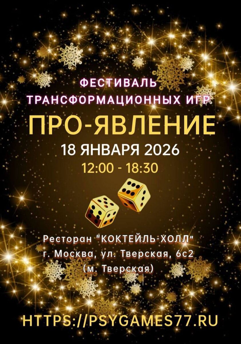 📆 18 января 2026 (ВС) - Фестиваль Трансформационных игр «ПРО-ЯВЛЕНИЕ» (офлайн,Москва) Если вы: 🔹 ведёте трансформационные и бизнес игры; 🔹️ работаете в коучинговом подходе; 🔹️ проводите мастер-классы, диагностики (нумерология, астрология и т.д.); 🔹 работаете с практиками осознанности, телесности, энергии; 🔹 проводите расстановки или иные методики, пробуждающие людей — тогда это приглашение вам! ➡️ По вопросам участия пишите, пожалуйста @help_events или @tatyana_trofimova1 Татьяна Трофимова Чат Фестиваля: https://t.me/+i6--2uK7UxUyZjMy Присоединяйтесь 🤗