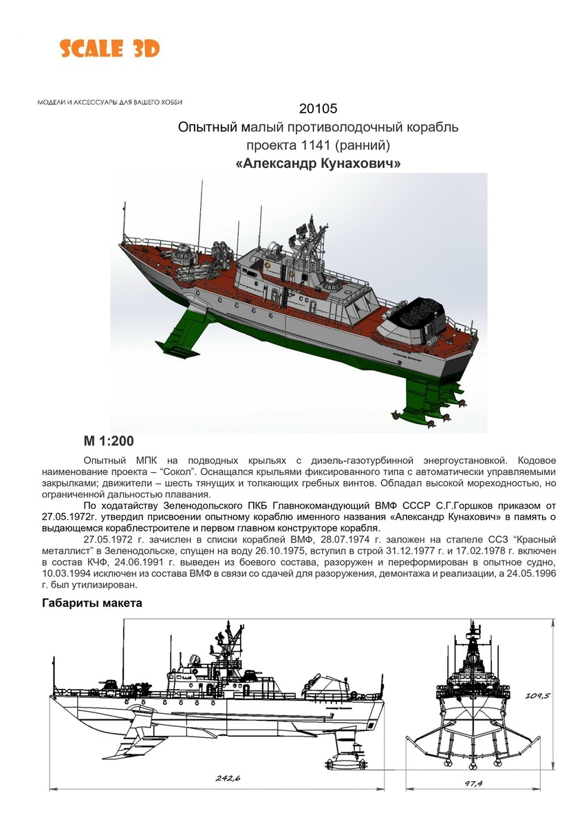 Новосибирская Scale_3D показала сборочную инструкцию своей выпускаемой на 3D-принтере модели МПК проекта 1141 шифр "Сокол" "Александр Кунахович" в масштабе 1/200.