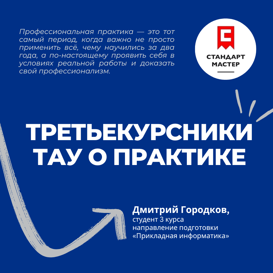 Дмитрий Городков: «Работа с реальными задачами ценнее теории» Продолжаем рассказывать о производственной практике третьекурсников Тольяттинской академии управления. О своем опыте рассказывает Дмитрий Городков, студент 3 курса Академии направления подготовки «Прикладная информатика». Дмитрий, где вы проходили практику и чем занимались? — Я проходил практику в компании ООО «Стандарт Мастер» на позиции десктоп-программиста. Какие основные задачи вы выполняли? Были ли трудности? — В мои основные обязанности входило разработка и доработка программного обеспечения под Windows. Одна из сложных задач была связана с развёрткой собственного FTP-сервера. Решал её, изучая технические мануалы и документацию по используемым технологиям, а также проверяя разные решения на практике. Какие знания и навыки, полученные в ТАУ, пригодились на практике? — На практике применялись общие знания по программированию, умение оперативно искать нужную информацию и навык работы с различными сетевыми технологиями. Чт