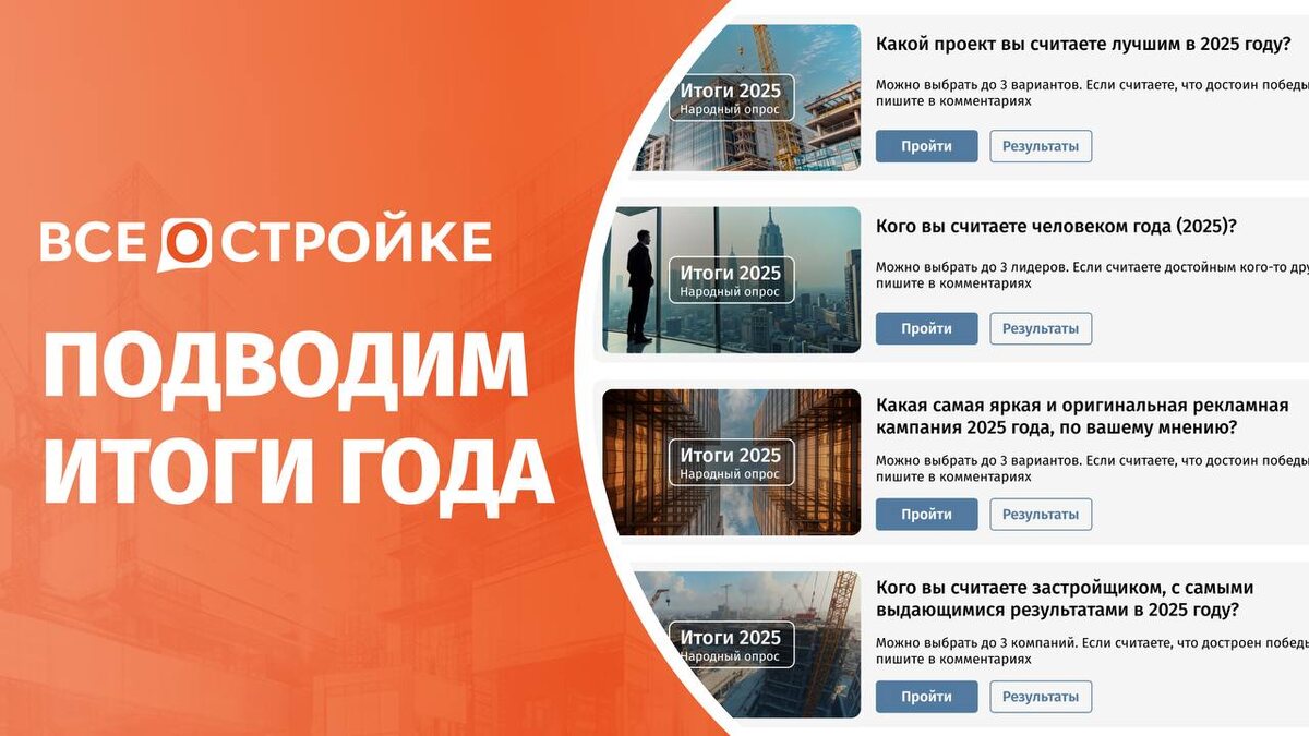 На портале Всеостройке.рф запустили серию опросов, чтобы узнать ваше мнение. Если же вы считаете, что победы достоин кто-то другой, то пишите в комментариях к опросу. Если до 25.12.25 наберётся 20 за одну компанию/человека/рекламную акцию, то включим её в список участников-номинантов. Итоги подведем 13.01 в нашем телеграм-канале. Опросы специально проводим на портале, так как установили запреты на повторные голосования через проверку ip-адресов для честных и объективных результатов.
