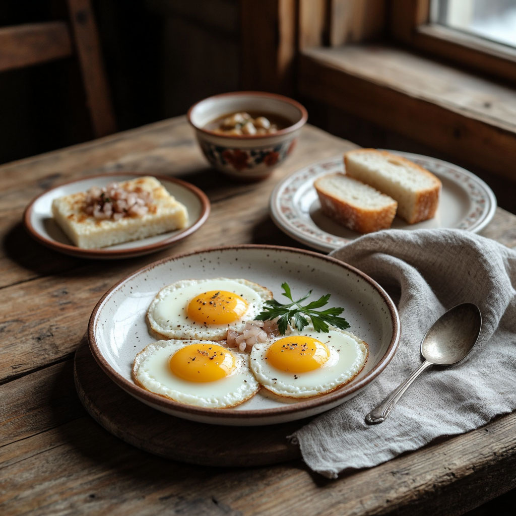 Есть блюда, которые не требуют пояснений. Их вкус понятен ещё до первой ложки. Яичница с луком и салом - именно такая еда. В русской кухне это был утренний опорный завтрак, особенно в холодное время года или перед тяжёлой работой. Её готовили быстро, но не наспех. Сало топили до прозрачности, лук доводили до мягкой сладости, и только потом добавляли яйца. Никаких лишних специй, никаких украшений - только тепло, жирность и насыщение. Это блюдо не праздничное, но очень честное. Оно давало силы и ощущение, что день начался правильно. Минимальный набор, где важна не сложность, а порядок действий. Сало в русской кухне было основным источником жира. Оно: На сале яичница получалась не сухой, с мягким вкусом и характерным ароматом, который сразу наполнял дом. Сало нарезают мелкими кусочками.