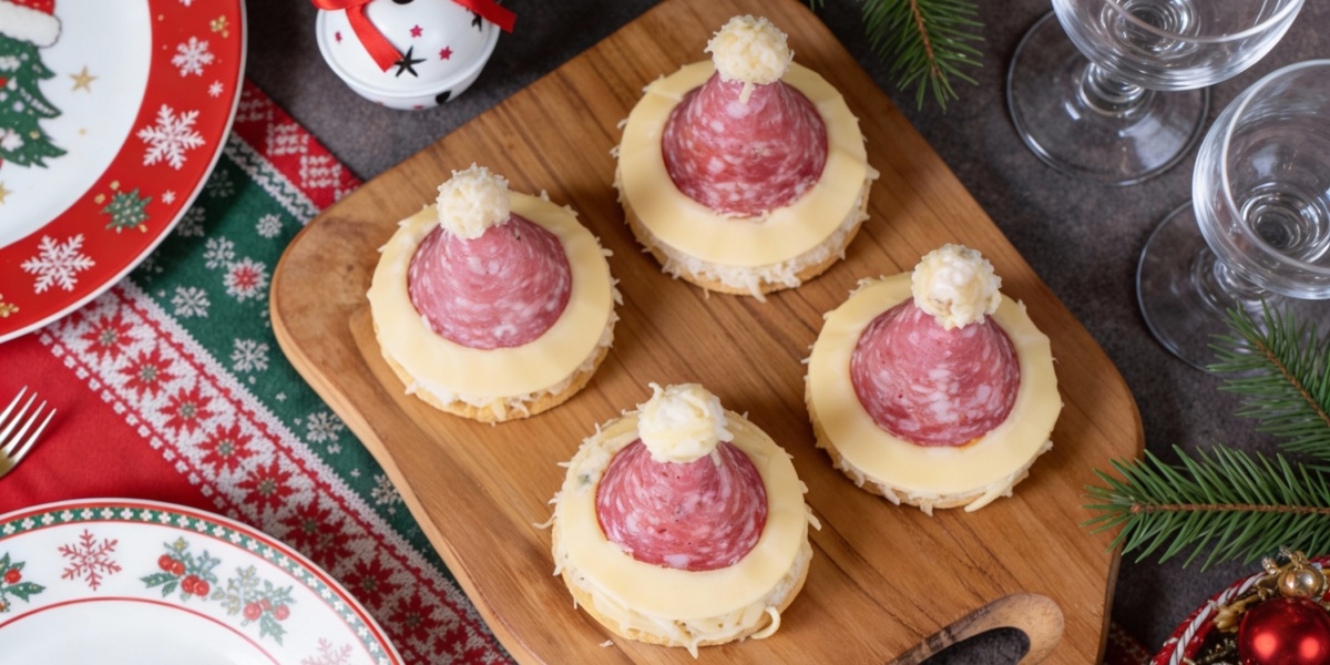 Сервелат — 8 ломтиков 🎄 Как приготовить закуску «Шапочки Деда Мороза» 🍽 Как подать эффектно