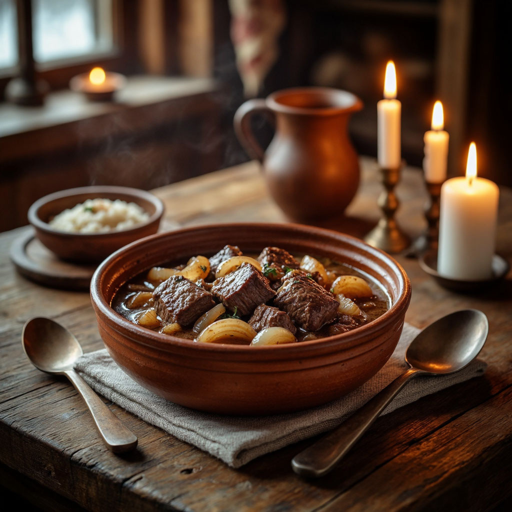 Есть блюда, которые не готовят на бегу. Тушёная говядина с луком - именно такое. Её начинали готовить заранее, зная, что стол соберёт всех не сразу. Мясо должно было долго стоять на слабом огне, постепенно становясь мягким, насыщенным, пропитанным соком и ароматом лука. Это блюдо не требовало украшений. Его ценили за надёжность: оно насыщало, согревало и оставляло ощущение спокойного, основательного обеда. Сегодня мы приготовим классическую тушёную говядину, без специй и современных приёмов - так, как её готовили в домашней русской кухне. Ничего лишнего - только то, что работает на вкус мяса. Говядина требовала времени, но щедро за него платила.