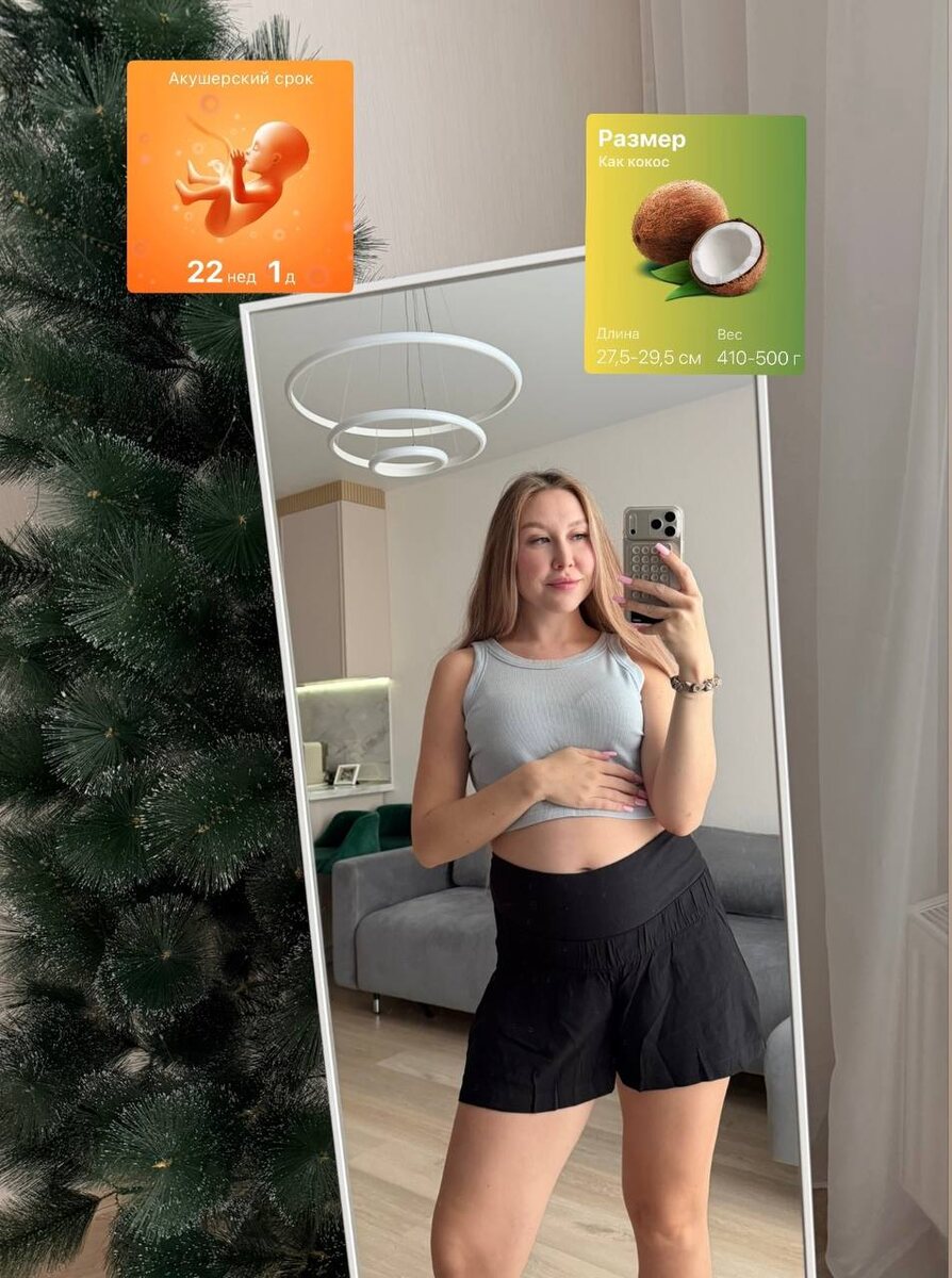 малыш теперь кокосик 🥥🥹 где-то пишут, что это уже 6 месяц, а где-то еще только пятый ну я буду ориентироваться по своим приложениям, они мне показывают, что это последняя неделя 5 месяца