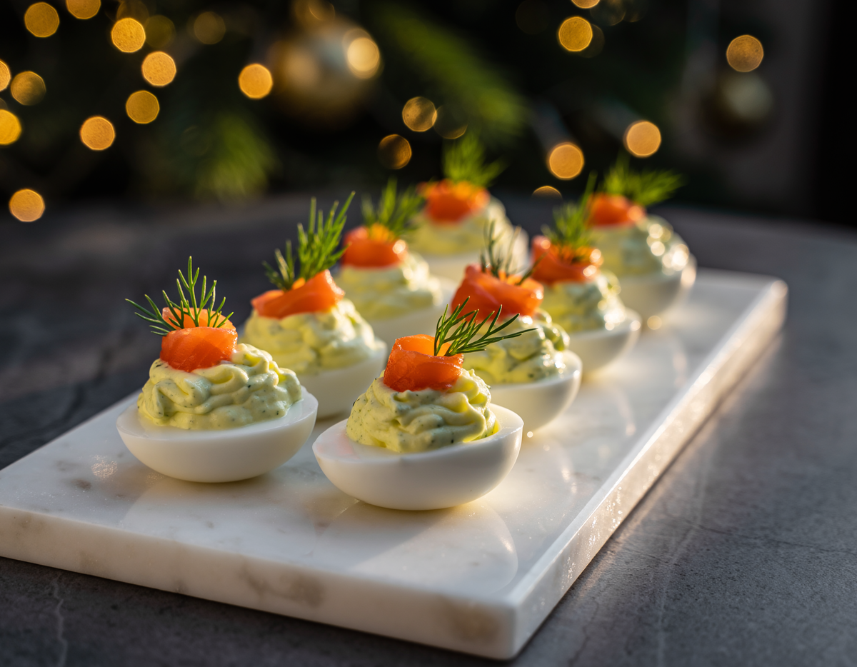 🥚 Закуска 1: "Нежность" – Фаршированные Яйца с Красной Рыбкой
