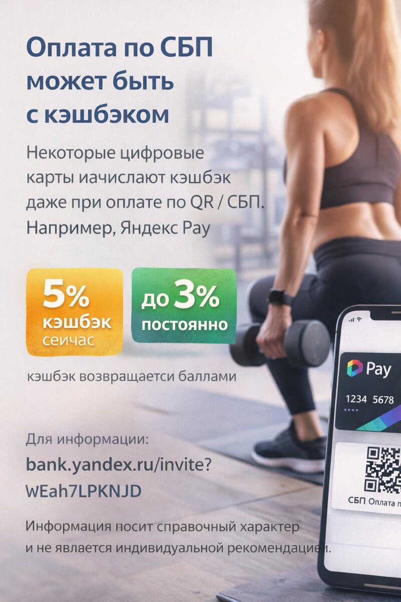 Часто возникает вопрос, почему при оплате по СБП кэшбэк обычно не начисляется. В большинстве банков это действительно так: СБП = без бонусов. При этом существуют цифровые карты, которые начисляют возврат баллами даже при оплате по QR / СБП. Один из таких вариантов — Яндекс Pay. Особенности, о которых может быть полезно знать: — оплата по QR / СБП без изменений в привычном формате — возврат начисляется в виде Яндекс баллов — карта цифровая, открывается онлайн — переводы и пополнения без комиссии Сейчас у Яндекса действует повышенный кэшбэк на покупки (условия устанавливаются банком и могут меняться). Ссылка для ознакомления: https://bank.yandex.ru/invite?refid=wEah7LPKNJD Баллы можно использовать внутри сервисов Яндекса или у партнёров. Информация носит справочный характер и не является индивидуальной рекомендацией.
