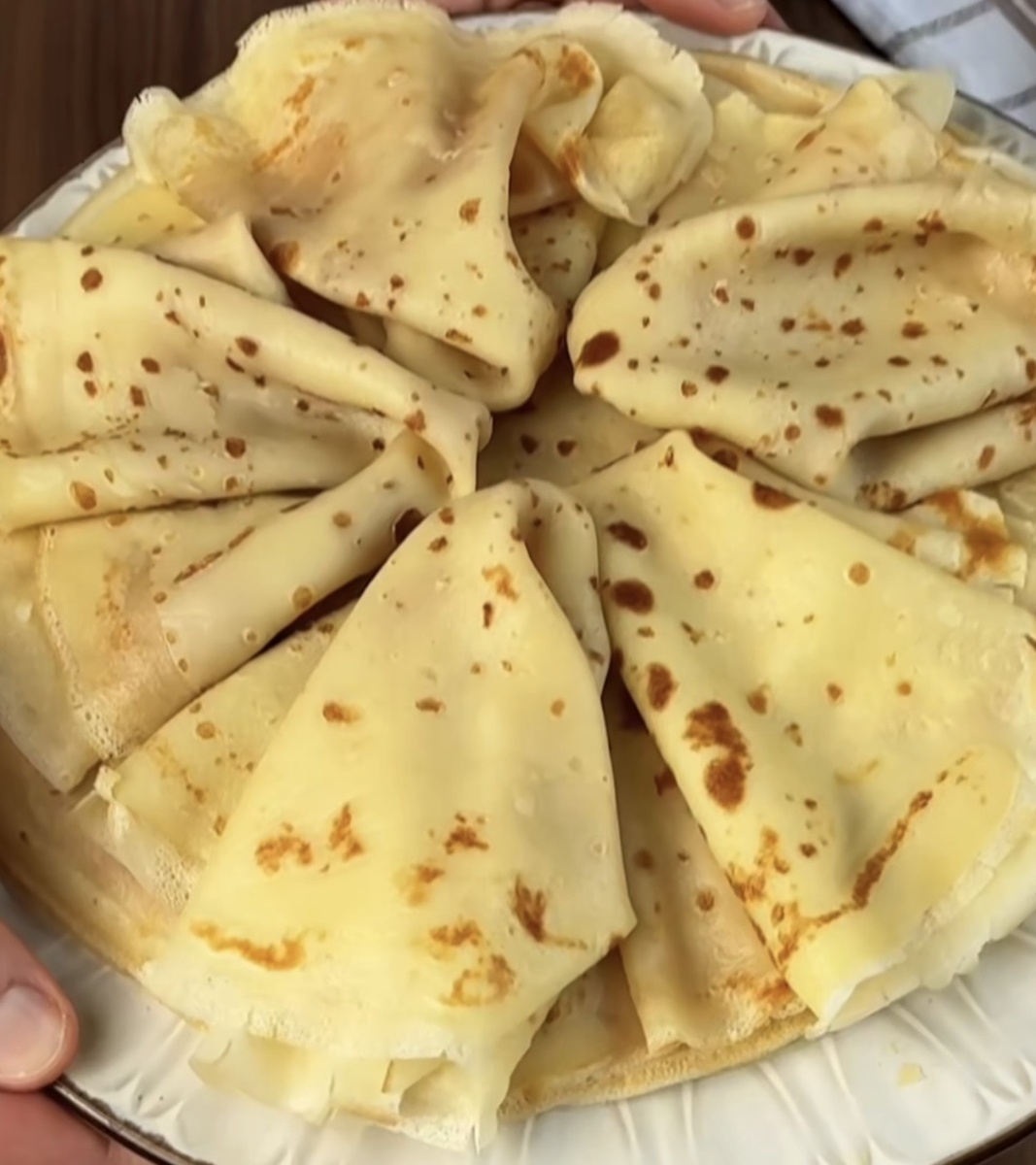Блины получаются нежными, очень тонкими и эластичными. У меня получилось около 20 штук. 3 яйца 2-3 ст.ложка сахара 2 стакан теплого молока 1,5 стакан муки 1 стакан кипятка 3 ст.ложка растительного масла Щепотка соли К яйцам добавьте сахар и щепотку соли, взбейте в пену, влейте стакан молока и перемешайте. Порционно всыпайте просеянную муку, тщательно перемешивая чтобы не было КОМОЧКОВ. Влейте молоко и перемешайте, продолжая помешивать влейте стакан кипятка. Добавьте растительное масло, снова перемешайте и отставьте тесто минимум на 30 минут. Обжарьте блинчики до готовности. Теста выливаю половину своего половника. Сковороду смазываю только перед первым блинчиком Тесто получается жидким, надо немного наловчиться, чтобы перевернуть блинчик. Удобно силиконовой лопаткой или руками подцепив краешек. Главное не переворачивать раньше времени и дать хорошо пропечься. Если блинчики рвутся, просто добавьте пару ложек муки и дайте тесту постоять 10 минут. Приятного апетита