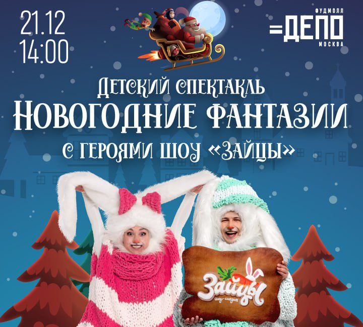 🤭 21 декабря представляем детский спектакль «Новогодние фантазии», наполненный весёлыми приключениями героев популярного шоу «Зайцы»: озорных зайчат Кроху и Крокса. Вместе с ними зрители попадут в чудесный сказочный лес, полный волшебства и радости. 🌲 Во время представления ребята вместе с нашими героями научатся настоящей фантазии, выполнив серию праздничных заданий благодаря помощи доброй Волшебной Новогодней почты. Их ждёт незабываемый квест, полное ярких эмоций путешествие и встреча Нового года в кругу любимых персонажей. 😇А после спектакля ребят ждут интерактивные анимации с мягкими игрушками и настоящее танцевальное веселье на детской дискотеке! ❗️ Вход бесплатный, но обязательна предварительная регистрация. Начало мероприятия в 14:00 Присоединяйтесь к нашим веселым праздникам и подарите детям море улыбок и впечатлений! 📍 ул. Лесная, д. 20, стр. 3, сцена фудмолла «Депо.Москва». 🛤 Белорусская 2️⃣5️⃣1️⃣4️⃣ 🚀 ОбзорчиГ: Москва в кадре ✨ ОбзорчиГ: Москва в кадре Дзен