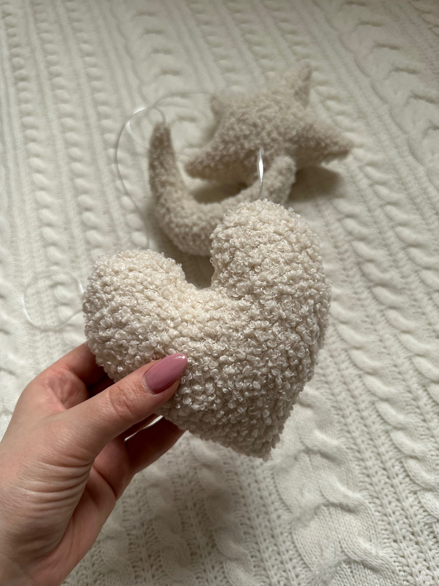 В понедельник и вторник у меня не было интернета, но в понедельник, пока он работал, я успела списаться с одной девушкой, которая оформила у меня три подвески для детского мобиля. Только ей нужны были на тонких ниточках и я решила, что почему бы и не сшить, все равно других заказов нет, а возможно и не будет 🙈