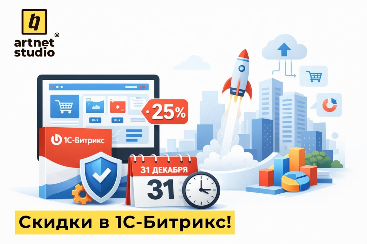 ! 🎯 До 31 декабря лицензия «1С‑Битрикс: Управление сайтом» доступна со скидкой до 25%. Зафиксируйте цену до повышения в 2026 году и обеспечьте стабильную работу вашего сайта на весь следующий год. 💥 Скидки: 20% на лицензии «Старт», «Стандарт», «Малый бизнес», «Бизнес» 25% на переходы между лицензиями 20% на апгрейд «Бизнес» ➡️ «Интернет-магазин + CRM» Почему клиенты выбирают Битрикс: ✔️ Быстрый старт и готовая структура сайта ✔️ Решения для интернет-магазинов любого масштаба ✔️ Надежность, безопасность и высокая нагрузка ✔️ Легкая интеграция с Битрикс24 Цены растут с января 2026 - действуйте сейчас и сэкономьте! Хотите, чтобы мы помогли выбрать и настроить лицензию? Пишите нам, и мы создадим сайт, который работает на ваш бизнес!💡 Запишитесь на бесплатную консультацию: 📞 +7 (8332) 222-00 ✉️ mail@artnetstudio.ru 🌍 artnetstudio.ru 📍 г. Киров, ул. Защитников Отечества, д.120, офисы 202–301