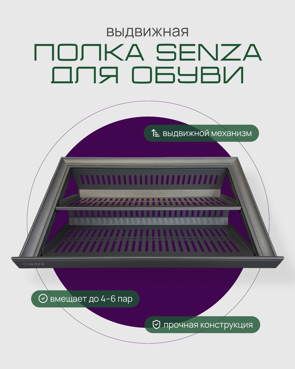 Организовать хранение обуви теперь ещё проще — благодаря выдвижной полке SENZA со скрытой системой направляющих и плавным выдвижением. ✨ Ключевые преимущества: 🔹 Скрытый монтаж Направляющие остаются невидимыми, сохраняя эстетичный внешний вид гардероба или прихожей. 🔹 Оптимальная организация Двухъярусная конструкция позволяет разместить до 4–6 пар обуви и обеспечивает быстрый доступ к каждой. 🔹 Прочная конструкция Комбинация стали, алюминиевого сплава и пластика гарантирует долговечность и устойчивость к нагрузкам. 🔹 Современный графитовый цвет Лаконичный дизайн легко впишется в любой интерьер. Эта полка — практичное решение для гардеробных, прихожих и шкафов хранения, где важны порядок, доступность и аккуратный внешний вид. 👉 Подробные характеристики — на сайте: https://senzamf.ru/products/garderobnye-sistemy/obuv