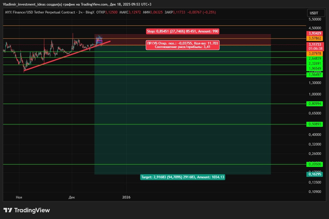 #MYX все на графике. Есть вопросы пишите, ждем профита. Плечо не борщите взял специально малое и за стопа в 27%. С учетом усреднения стоп будет 18% +-