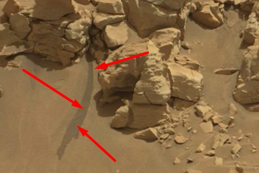 В 2014 году марсоход Curiosity сделал фотографию, которая пять лет пролежала в открытом доступе на сайте NASA, прежде чем кто-то обратил на неё внимание. На снимке пыльных марсианских камней в левом нижнем углу видно нечто, похожее на тёмный поток жидкости, пролившийся из-под камня. Это не тень — цвет, направление и текстура явно указывают на воду, которая не успела полностью впитаться в песок. Чуть выше видны более светлые, подсохшие потоки. Но NASA ни разу официально не объявляло о находке жидкой воды на поверхности Красной планеты. Лёд на полюсах — да, это известно давно. А вот жидкая вода, которая может означать жизнь, официально остаётся марсианской мечтой. Случайность? Или NASA намеренно утаивает самое важное открытие в истории человечества?