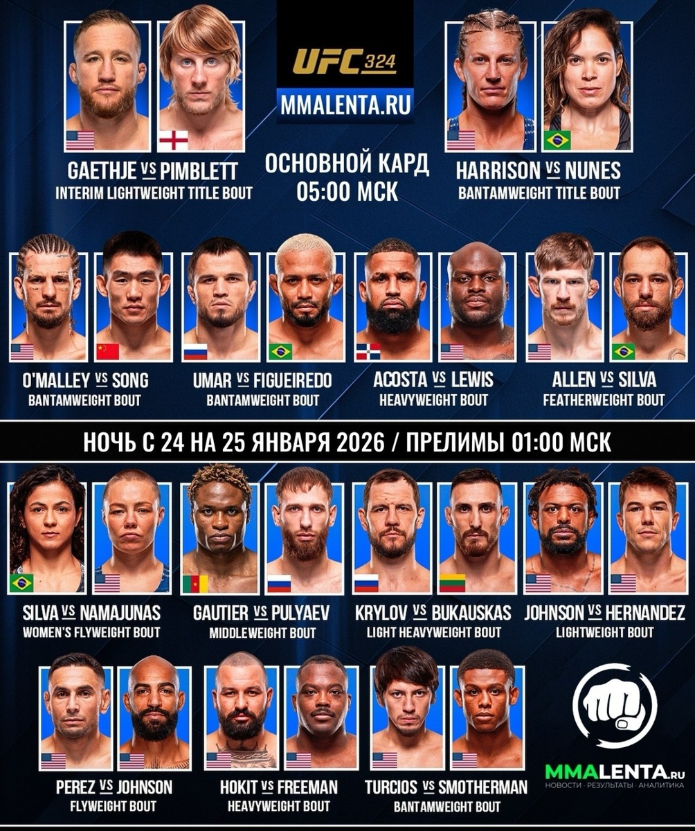 Кард UFC 324 (ночь с 24 на 25 января 2026 г