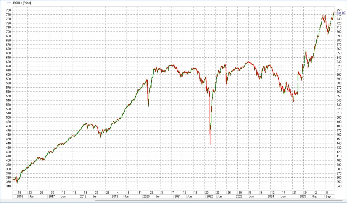 За последние 12 месяцев / 365 дней Индекс полной доходности ОФЗ RGBITR имеет результатом внушительные 33,9%. С начала 2025 года по сей день тоже много, но уже только 23,3% (24,1% годовых). За последние полгода 11,5%, или 23 в годовых. Накопленная доходность всё ещё выше 20%, но ее снижение хорошо заметно. За последний квартал Индекс ОФЗ дал только 3,3%. Как часто бывает, рост популярности не приводит к соответствующему приросту портфеля. Популярность, вообще, запаздывающий индикатор. Треть всего годового результата ОФЗ – пара сессий прошлого декабря. И тогда отношение к этому инструменту было куда осторожнее, чем сейчас. И наоборот, летом, после полугодового ралли госдолга сформировался стереотип, что ОФЗ – лучшее из рублевых вложений. Но эффект не тот. Эмитент ОФЗ – государство – тоже ведь способно оценить интерес инвесторов. И дать им новое предложение. Нынешний год – рекордный по размещениям Минфина: ±7 трлн р. В прошлом было 4 трлн. Итак, есть или был рост популярности среди инвест