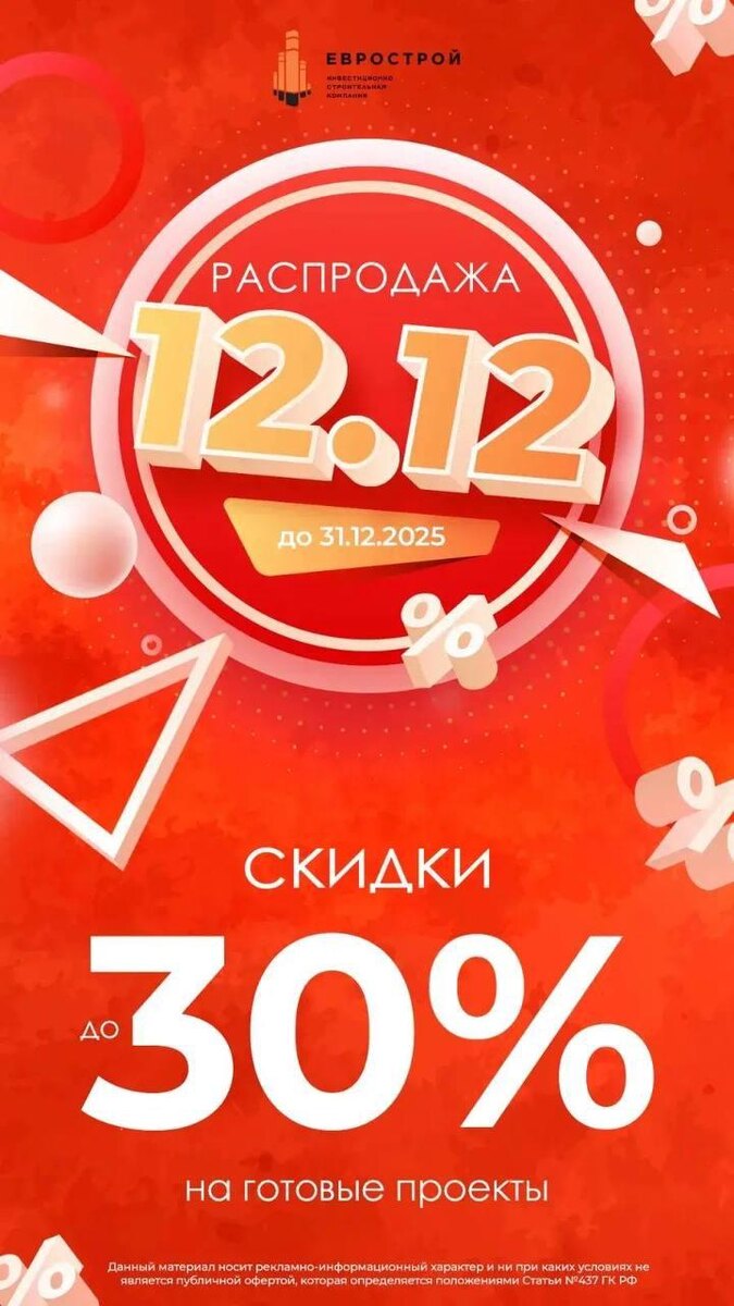 Новогоднее предложение от ГК Еврострой - до 31.12 скидка до 30% на готовые объекты