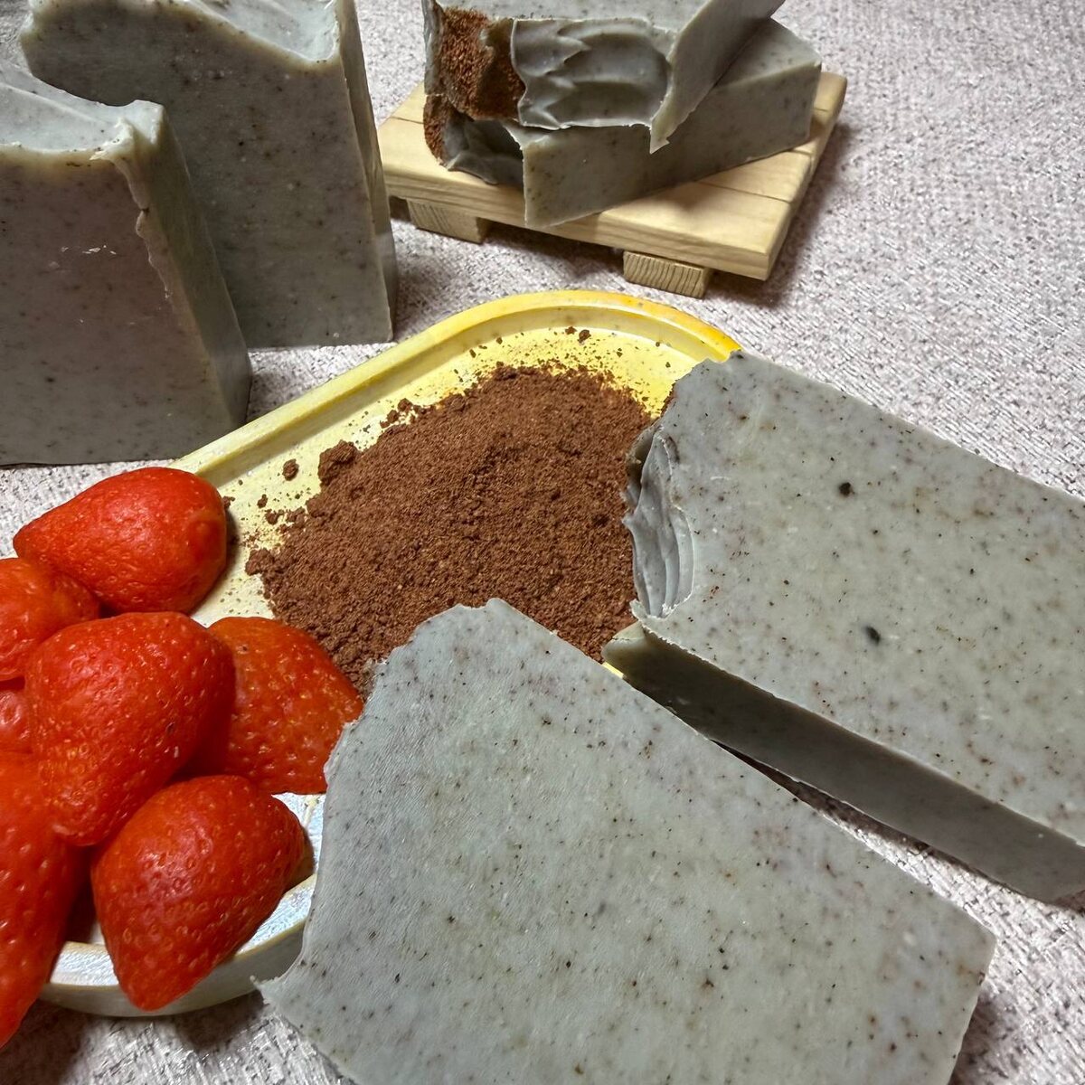 «Клубничное наслаждение» 🍓 Привет, друзья! Такого у меня еще не было! Вы знаете, что никогда не останавливаюсь в изучении моего ремесла, ищу новые рецепты, вкусы и ароматы. И сегодня хочу представить вам мое новое клубничное мыло! 🍓Клубника действует как мягкий натуральный скраб благодаря своим крошечным семенам. В основу добавлен: ♥️абразив клубничной косточки 🩶бамбуковый уголь На финише вы получаете деликатный уход вашей кожи. Обычно, моё мыло требует времени для вызревания, чтобы стать ещё более насыщенным по цвету, аромату и свойствам. Но здесь всё иначе, этот кусочек счастья готов сразу после изготовления! Его не нужно томительно ждать или прятать подальше от глаз, стоит им начать пользоваться сразу после покупки. Хотя выглядит он так аппетитно, что рука сама тянется спрятать 😅 Итак, если хотите побаловать себя чем-то необычным и приятным, попробуйте мое новое мыло ручной работы «Клубничное наслаждение» ❗️Для заказа пишите сюда или в личные сообщения ‼️ВНИМАНИЕ сайт вре