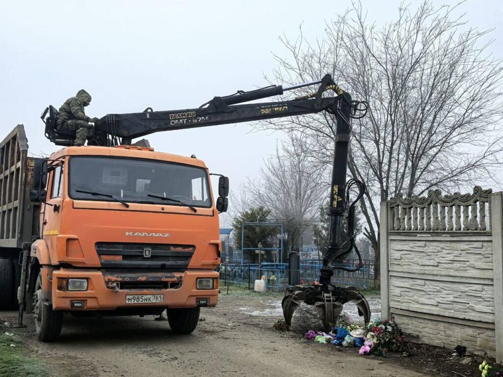 На городском кладбище в Азове продолжается уборка территории