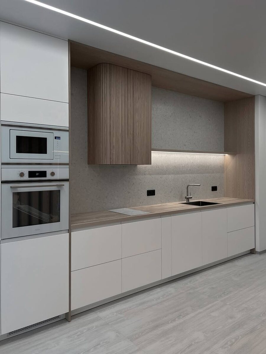 🤍🌿 Спокойные оттенки, тёплое дерево, скрытая подсветка и идеальная геометрия ✨ Ничего лишнего — только комфорт, уют и продуманные детали на каждый день. Такие кухни мы делаем на заказ — точно под пространство и вкус. Хочешь лучшую кухню под себя? Пиши, всё расскажем 💬 👉 wa.me/+79955009461