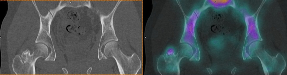 Остеохондрома – это наиболее распространенная доброкачественная опухоль кости, которая обычно развивается в детском или подростковом возрасте. Она представляет собой костный вырост, покрытый хрящевой "шапочкой". Зачастую, остеохондромы бессимптомны и обнаруживаются случайно при обследовании по другому поводу. Однако, при больших размерах или при расположении вблизи суставов, они могут вызывать боль, ограничение движения, деформацию кости, а иногда даже повреждение сосудов и нервов. Лучевые методы диагностики остеохондром: 1. Рентгенография: — Что видим: Рентгенография – это зачастую первый метод, который используется для визуализации костных образований. На рентгенограмме остеохондрома выглядит как костный вырост, исходящий из поверхности кости. — Характерные признаки: — Расположение: Обычно располагаются в метафизах длинных трубчатых костей (бедренная, большеберцовая, плечевая кость). — Форма: Разнообразная - от грибовидной до шиповидной. — Непрерывность кортикального и медуллярно