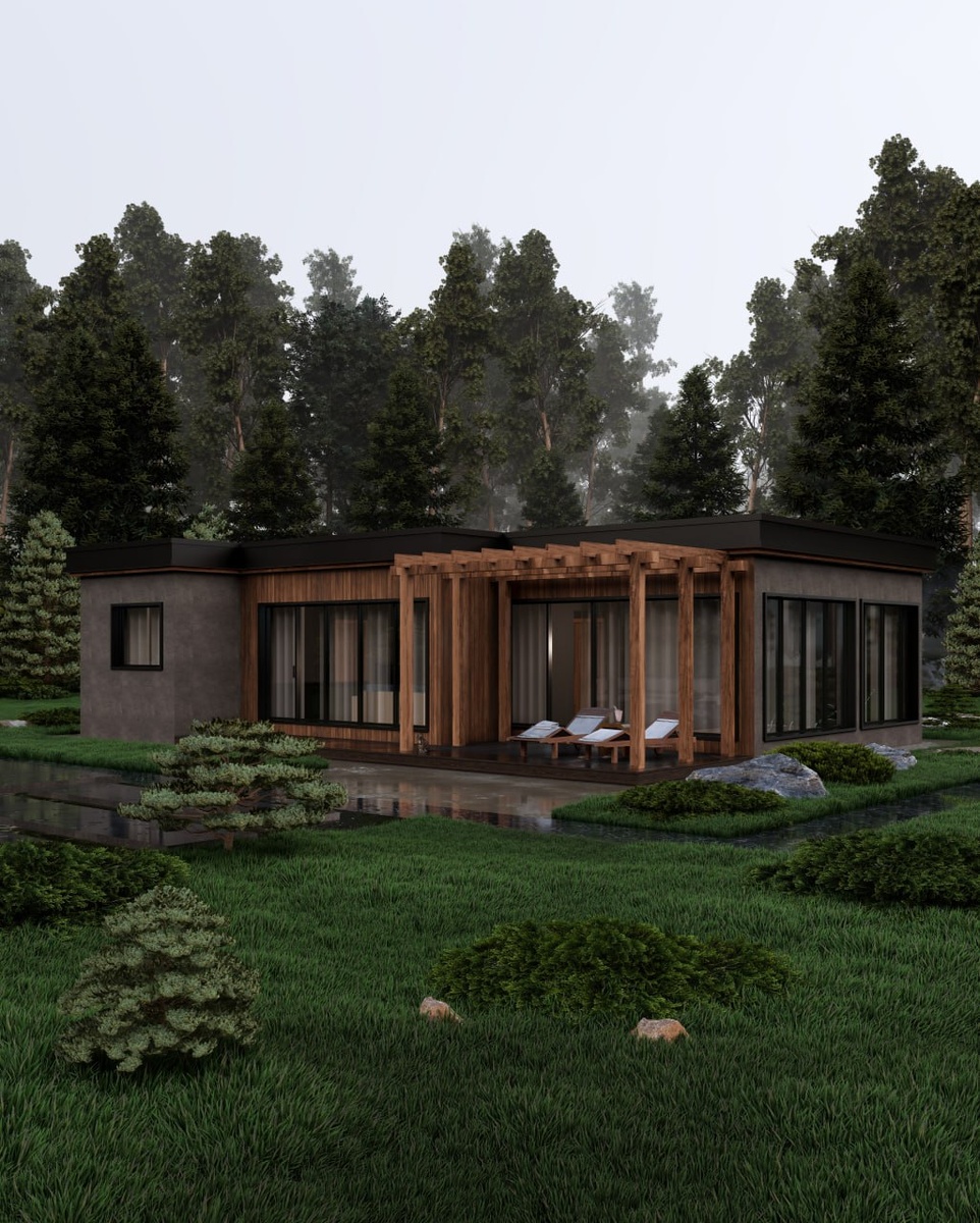 СМС-85 | Общая площадь: 108 м² | Полезная площадь: 88 м² Стильная баня в архитектуре хай-тек - здесь можно отдохнуть и восстановить силы. В центре бани - просторная комната отдыха 27 м² с выходом на террасу. Здесь можно собраться дружной компанией или просто полежать на диване после парной. Из комнаты отдыха вы попадаете в душевую, а уже оттуда - в парную или хамам. Одна из главных особенностей проекта - бассейн площадью 12,38 м². Идеален для плавания, контрастных процедур и отдыха после тренировки. Для тех, кто любит спорт, предусмотрен отдельный спортзал. Особенно удобно зимой: позанимались, приняли душ - и уже дома. Такой формат экономит время и позволяет держать форму круглый год. Есть хозяйственный блок для хранения инвентаря и технических вещей - баня остаётся аккуратной и без визуального шума. Подробнее о проекте, сроках и стоимости строительства - на нашем сайте.