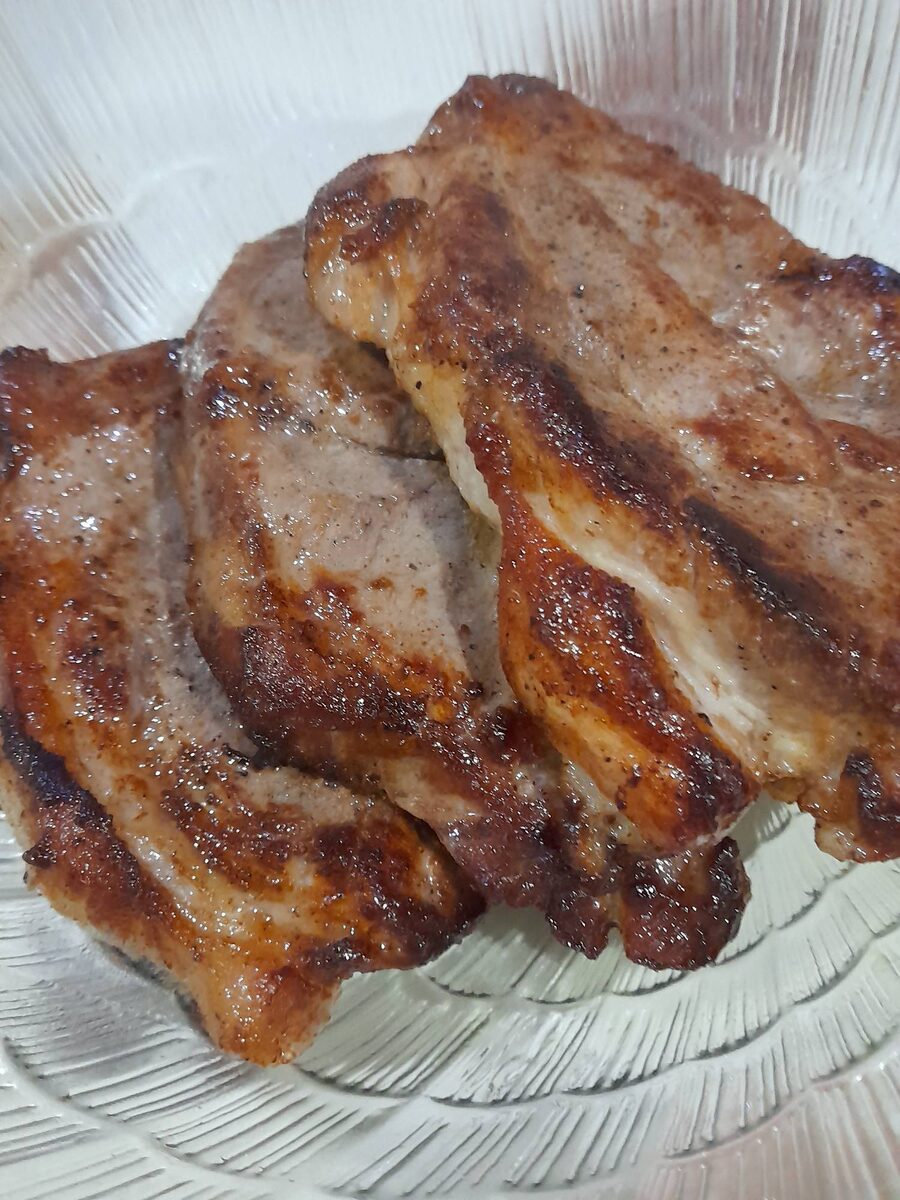 Как приготовить сочный стейк в домашних условиях. Обычно вы кайфуем от этого блюда в гриль-барах, на природе при мангале или в ресторанах. Но очень хочется порадовать себя и близких дома. Секрет хорошего стейка прост. Хорошее мясо от проверенного фермера или производителя. Умелые ручки. Подходящая посуда. Нам понадобятся (на 4 куска): О гарнире писать не буду сегодня, но советую овощи конечно. Начнем с мяса. Думаю шею (ошеек) выбирать умеете и знаете какая это часть свинки. Если нет, смотрите Здесь, в одной из моих статей. Режем мясо поперек волокон на 3-4 куска толщиной в 3 см. Обратите внимание на жировую сетку, она придаст сочности блюду частично растворившись под воздействием высокой температуры. Растительное масло 2 ст.л., горчицу, перец и соль смешать и смазать каждый кусок нашего красивейшего стейка с обеих сторон. Оставить на 20 минут. Для жарки стейков нам понадобится сковорода с толстым дном. Отлично подойдет сковорода гриль, придаст стейку красивый узор. !!! Важно помнить,
