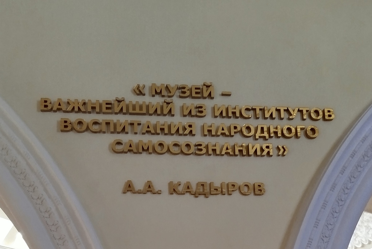 Гуляя по Грозному я случайно наткнулся на Мемориальный комплекс славы имени А.А. Кадырова. Снаружи было ощущение, что это просто холм со стелой и красивым парком вокруг. Но, подойдя ближе, я увидел вход в музей. И конечно не смог пройти мимо. Музей находится "в холме" и для его осмотра ты спускаешься по лестнице на нижний уровень. При входе в музей бросилось в глаза и запомнилось выражение Ахмата Кадырова, нанесенное золотыми буквами на стену при входе: "Музей - важнейший из институтов воспитания народного самосознания". Практически весь музей посвящен жизни и деятельности Ахмата Кадырова. На втором уровне находятся холлы для проведения временных выставок. Когда я посещал музей, там была выставка прекрасных картин с видами Чеченской республики и Грозного. В одном из углов музея создана инсталляция, показывающая рабочий кабинет и приемную главы Чеченской республики Ахмата Кадырова. Интересно посмотреть "как устроен" кабинет главы республики. В целом это красивый музей, но по моему мнен