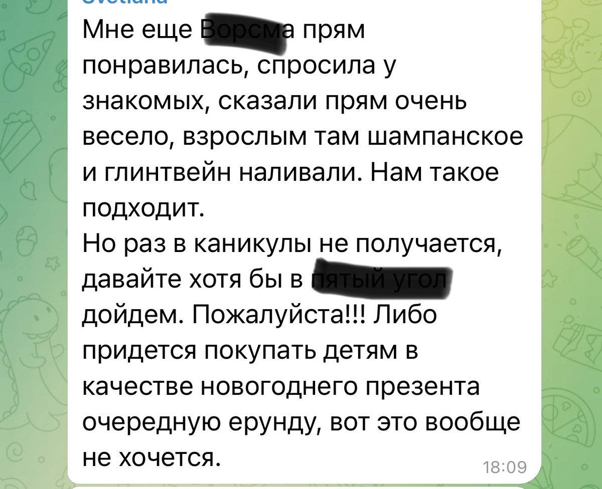Либо придётся покупать детям в качестве новогоднего презента очередную ерунду, вот это вообще не хочется». Это сообщение — не шутка и не мем из интернета. Обычный родительский чат обычного школьного класса. Родители выбирают, куда отправить детей на новогоднюю поездку. Вроде бы речь о детском празднике. Но в центре внимания почему‑то шампанское и глинтвейн для взрослых, а не впечатления для ребёнка. И вот тут становится интересно: что вообще происходит с нашими новогодними «классными» традициями? Никто не против бокала шампанского на корпоративе. Взрослые имеют право отдыхать. Вопрос в другом: почему критерии выбора детской поездки звучат так: А дети где в этой формуле? Чем там будет интересно именно им — спектакль, анимация, мастер‑классы, живая ёлка, возможность поиграть на улице? Об этом в сообщении ни слова. Празд