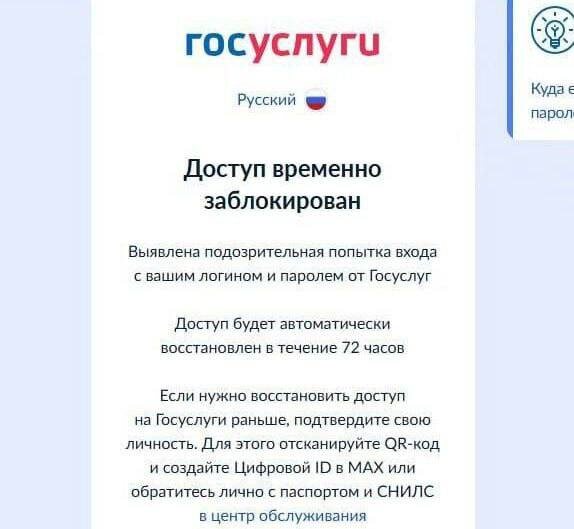 Доступ к «Госуслугам» могут ограничить из-за «подозрительной активности», в том числе при использовании сервисов для обхода блокировок. Для восстановления доступа предлагается два варианта: — ожидание до 72 часов — подтверждение личности через госмессенджер Max. 🔗Знай Краснодар