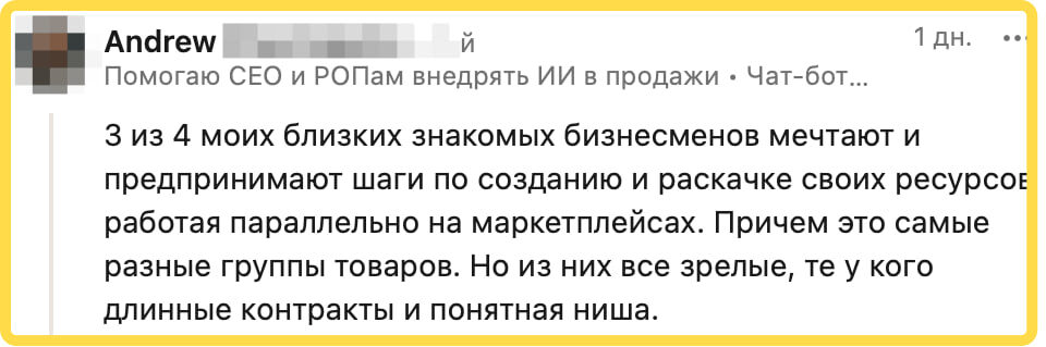 Ясен пончик, что МП дает моментальный буст в продажах, но не делать свои ресурсы - просто глупо. Да, это медленно, долго и дорого... Но задача МП не дать вам заработать, как мне кажется :) А вот еще мне пишут: "Общалась с производителем - куртки, жилеты, пуховики высокого качества. Стал сайт свой разрабатывать. Обдирают, как липку МП-сы" Не удивлен... Русский ИТ бизнес