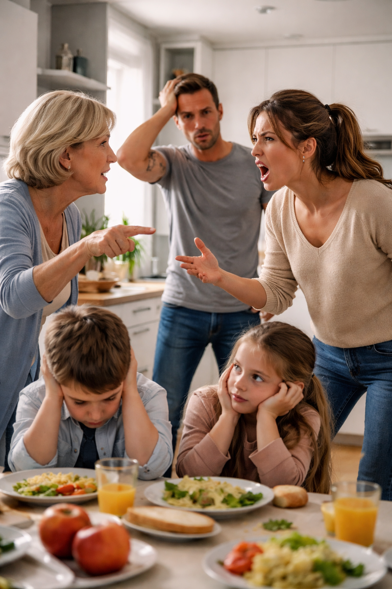 — Доедайте, — сказала свекровь строго. — Мама устала, не мешайте.