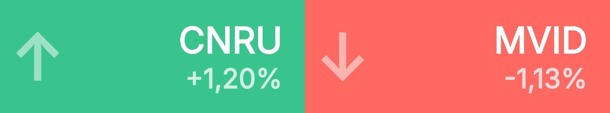 : Циан • 610 ₽ • 1,20% Медикал Гр • 1 434 ₽ • 0,94% Алроса • 42,36 ₽ • 0,81% ЮМГ • 822 ₽ • 0,55% ЭЛ5-Энерго • 0,50 ₽ • 0,44% Фикс Прайс • 0,60 ₽ • 0,43% Ростелеком • 63,65 ₽ • 0,39% Аэрофлот • 60,14 ₽ • 0,35% Северсталь • 987 ₽ • 0,33% Сегежа • 1,24 ₽ • 0,32% 🔻 Топ-10 лидеров падения среди крупнейших акций: М.Видео • 74,25 ₽ • -1,13% Московский • 7,16 ₽ • -0,67% Полюс • 2 295 ₽ • -0,66% ГК Самолет • 1 063 ₽ • -0,65% Эн+ • 458 ₽ • -0,53% Татнефть • 602 ₽ • -0,45% Банк Санкт • 308 ₽ • -0,43% Совкомбанк • 12,92 ₽ • -0,42% ПИК • 512 ₽ • -0,39% АФК Систем • 14,21 ₽ • -0,37%