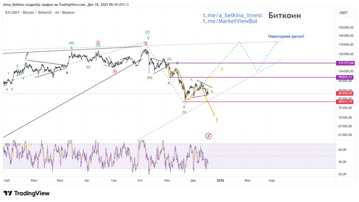 На Биткоине сохраняется неопределенность, которая должна разрешиться в ближайшие дни. Здесь по-прежнему валидны оба варианта – за развитие глубокого снижения в волне (ii) of [iii] и за вероятность Новогоднего ралли. Уровни подтверждения и отмены пока НЕ пройдены. Не является ИИР 💪 БОЛЬШЕ разметок в Закрытом канале: Бот Закрытого Канала, доступен Пробный Период! (подписаться из-за границы, пишите личным сообщением)