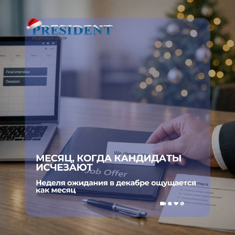🎄 Декабрь — самый коварный месяц для найма. Кандидаты уже мысленно в отпуске, бюджеты «на паузе», а решения откладываются «до января». И именно в этот момент сильные кандидаты чаще всего исчезают. Вот что действительно помогает удержать интерес перед праздниками 👇 💎Не затягивайте этапы Если кандидат дошёл до финала — ускоряйтесь. В декабре неделя ожидания ощущается как месяц. 💎Честно проговаривайте сроки Если решение будет после праздников — скажите об этом прямо. Неопределённость отпугивает сильнее отказа. 💎Фиксируйте интерес письменно Даже если оффер будет позже, важно зафиксировать: «мы вас выбираем и планируем продолжить после праздников». 💎Предлагайте «мягкий» старт Выход после январских праздников, вводные встречи онлайн или постепенное погружение — это снижает тревогу кандидата. 💎Давайте ощущение стабильности В конце года люди особенно ценят надёжность работодателя, прозрачность условий и уверенность в будущем. В декабре выигрывают не те, кто «ставит подбор на пау