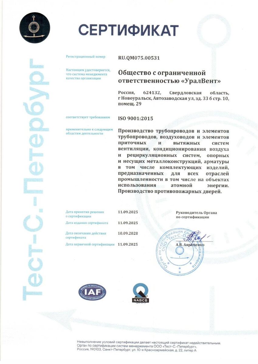 📃 Компания «Уралвент» (резидент ТОР «Новоуральск») получила сертификат соответствия системы менеджмента качества требованиям ISO 9001:2015. Сертификация охватывает производство: 🔵трубопроводов и их элементов; 🔵воздуховодов и элементов систем вентиляции, кондиционирования и рециркуляции воздуха; 🔵опорных и несущих металлоконструкций; 🔵арматуры и комплектующих изделий. ❗️Наличие сертификата позволяет компании поставлять эту продукцию для всех отраслей промышленности, включая объекты атомной энергетики в России и за рубежом. #ТОР #Новоуральск #СМК #АтомнаяОтрасль