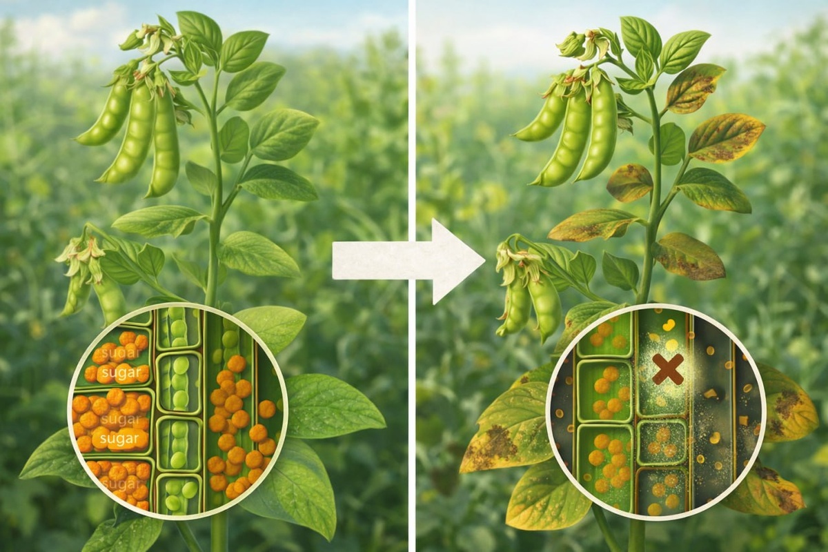 Калий в растении - это не про цвет листа, а про транспорт. Поэтому его дефицит почти всегда начинается скрыто и долго остаётся незаметным глазу. Пока агроном ждёт классическое краевое пожелтение листовой пластины, культура уже теряет урожай. При недостатке K⁺ в первую очередь страдает работа флоэмы. Калий необходим для создания осмотического давления, за счёт которого ассимиляты, прежде всего сахара, перемещаются из листа в точки роста, завязи и плоды. Когда калия не хватает, этот «насос» работает хуже: сахара накапливаются в листьях, а генеративные органы начинают испытывать энергетический голод. В поле это проявляется как парадокс. Лист может выглядеть вполне здоровым, иногда даже насыщенно-зелёным, но завязи формируются хуже, плоды растут медленнее, снижается выравненность и масса. Особенно ярко эффект заметен у культур с высоким оттоком ассимилятов - овощей, подсолнечника, кукурузы, плодовых. Важно понимать: визуальные симптомы калийного дефицита: краевой некроз, подсыхание лист
