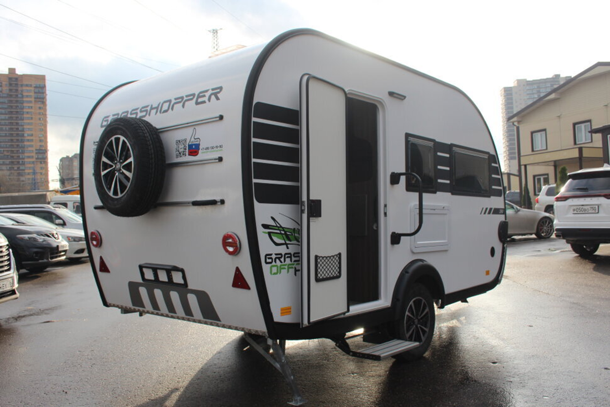 Grasshopper 390TMG 2023 - компактный прицеп-дом с душем, туалетом и кухней Grasshopper 390TMG - это современный прицеп-дом. В нем есть все для комфортных поездок: душ, туалет, кухня и спальные места. Компактные размеры и легкий вес делают его отличным выбором для путешествий. Узнайте, чем еще удивляет этот дом на колесах. Фотография: 110km.ru Grasshopper 390TMG 2023 года — это современный компактный дом на колесах от российского производителя. Модель сразу привлекает внимание необычным дизайном интерьера, где натуральные материалы и уютные зеленые акценты создают атмосферу домашнего тепла даже в путешествии. Фото: caravanerworld.ru Прицеп рассчитан на четырех человек, все места оснащены ремнями безопасности. Внутри обустроены три спальных места: большая двуспальная кровать-трансформер и две односпальные, одна из которых находится на втором ярусе. Это делает модель удобной для небольшой семьи или компании друзей. Фото: caravanerworld.ru На кухне есть все необходимое: холодильник на 50 л
