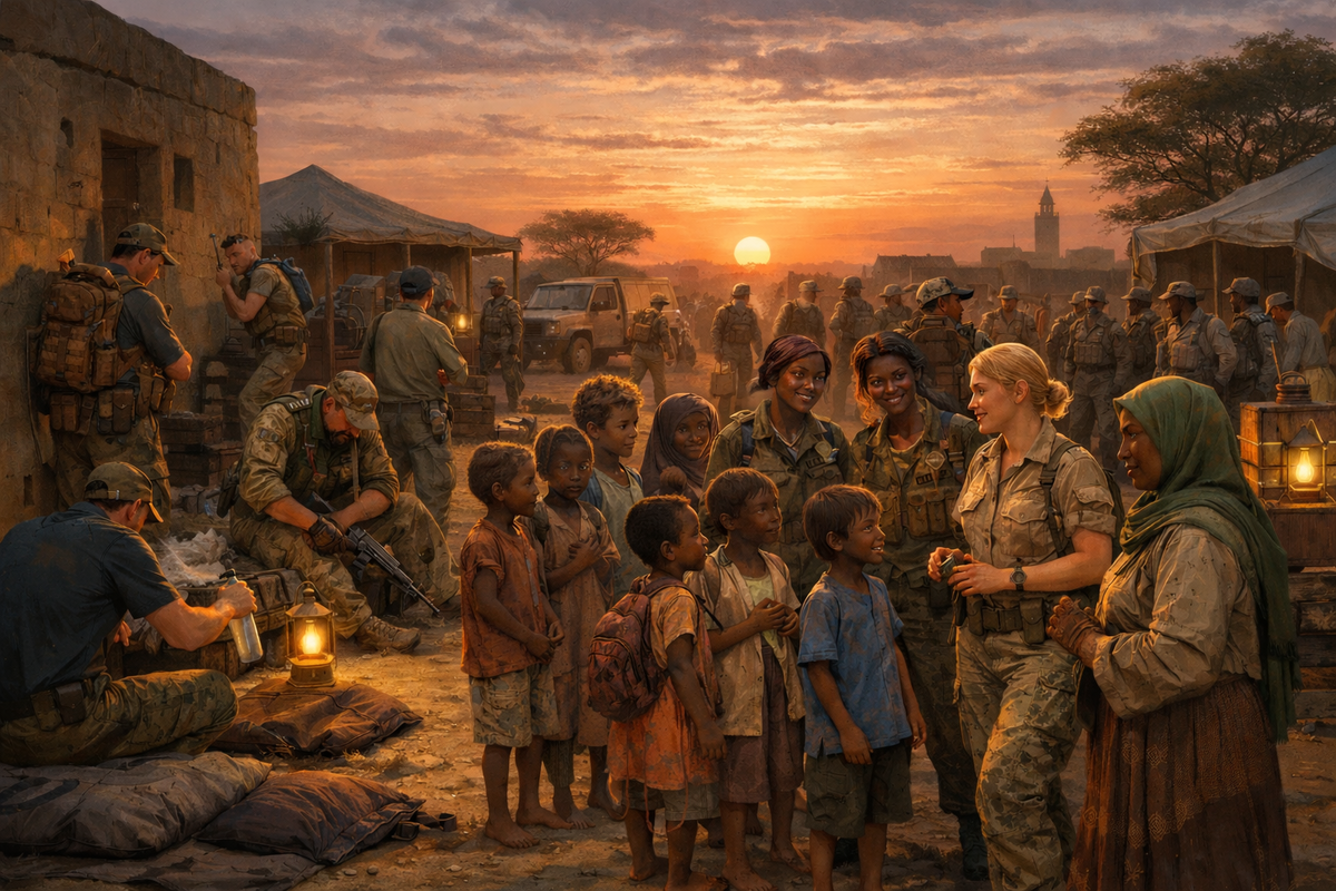 Сначала робко, по одному, а потом целыми стайками прибежали дети – всех возрастов, босые, пыльные, с огромными глазами. Они с нескрываемым восторгом рассматривали военных, словно перед ними был живой музей. Следом потянулись взрослые – в основном женщины, осторожные, сдержанные, но любопытство брало своё. Пришли и двое учителей постарше – Джамила и Нонни.