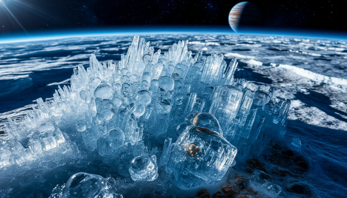 Привет, команда космических гляциологов! ❄️ Мы с вами исследовали звёздную пыль, планеты и галактики. Но сегодня мы отправимся в самое холодное путешествие — в мир космического льда. Это не просто замёрзшая вода на полюсах Марса. Это фундаментальное вещество Вселенной, которое хранит тайны рождения планет, комет и, возможно, самой жизни. От ледяных гигантов на окраинах системы до замерзших океанов спутников — лёд вездесущ. Готовы ли вы расколоть космический айсберг и заглянуть в его кристаллическую структуру? Поехали в царство вечного холода! 🌌 1. Что Такое Космический Лёд? Это Не Только Вода!