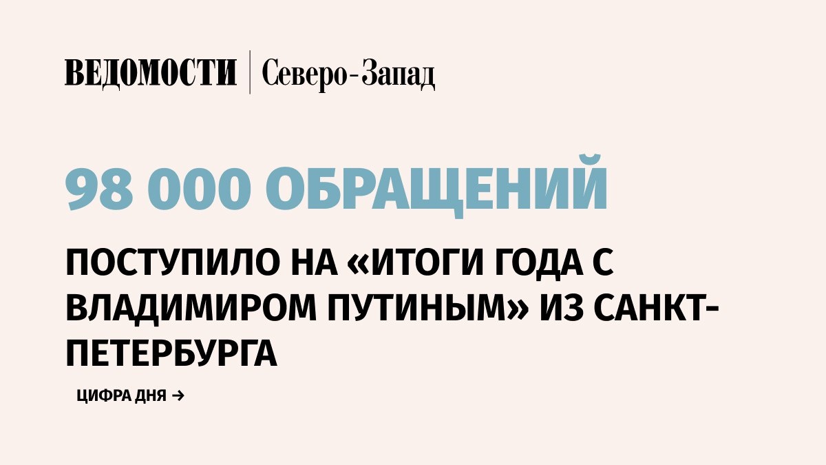 Жители Санкт-Петербурга направили 98 000 обращений на программу «Итоги года с Владимиром Путиным», которая состоится 19 декабря